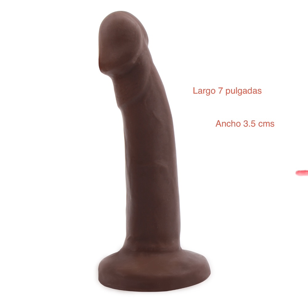 Consolador FLEXIBLE ( le cambias la inclinación a tu gusto ). Largo 7 pulgadas y ancho 3.5 cms . Café o color piel . Base succión.