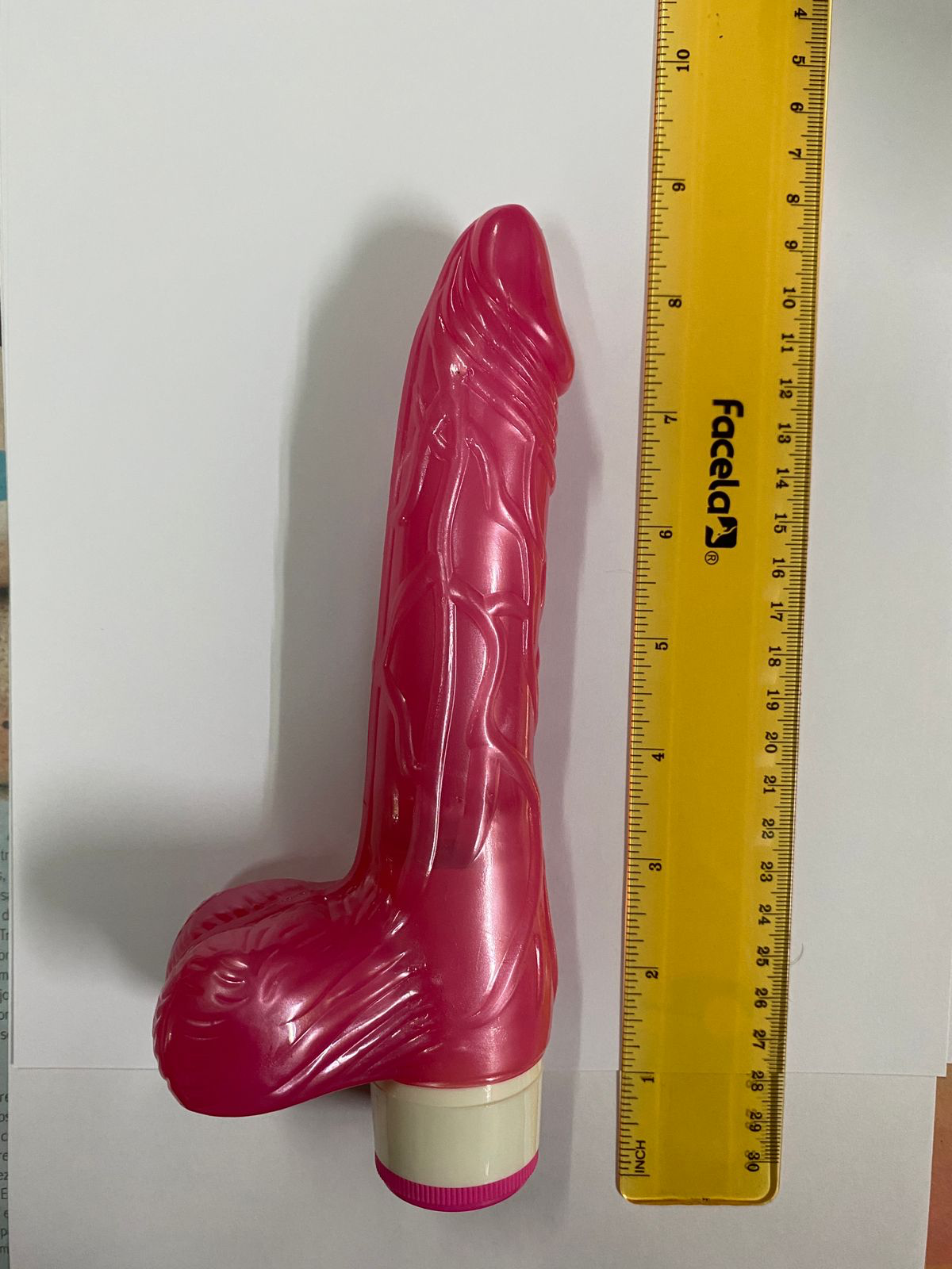 Vibrador rosado con testículos de 8.5 pulgadas utiliza dos baterías AA